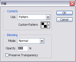 Fill ( Edit > Fill ) this layer with the pattern you made in Step 1. Change the Blending Mode of this layer to “Exclusion”.