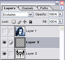 Fill ( Edit > Fill ) this layer with the pattern you made in Step 1. Change the Blending Mode of this layer to “Exclusion”.